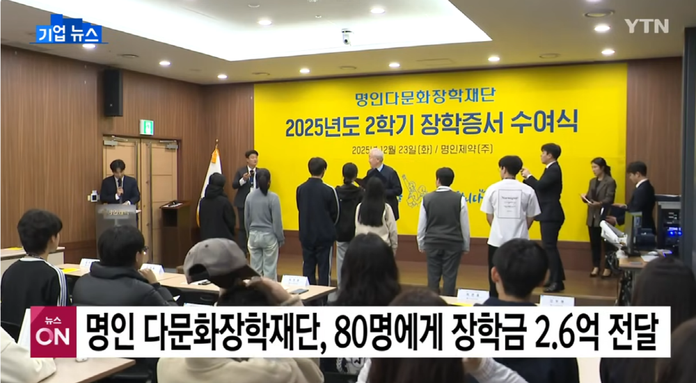 명인제약이 설립한 명인 다문화장학재단이 장학증서 수여식을 열고 12개국 출신 대학생 등 80명에게 장학금 2억 6천만 원을 전달했습니다.
