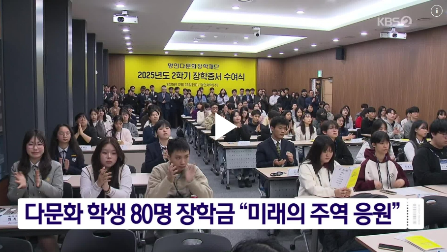 명인 다문화장학재단이 이번 학기 80명의 다문화 학생들에게 총 2억 6천만 원의 장학금을 전달하며 미래의 주역이 될 것을 응원했습니다.